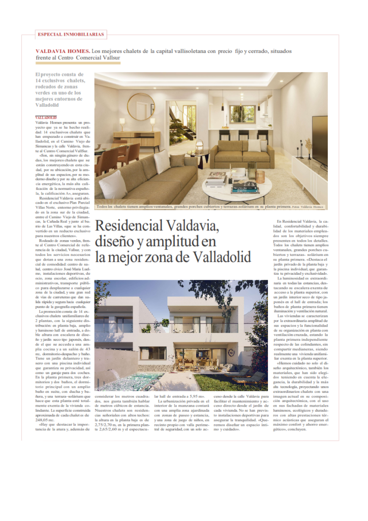 Hoy desde VALDAVIA HOMES queremos hablarles de una de las características fundamentales de la promoción que estamos construyendo en la calle Valdavia y Camino Viejo de Simancas, frente al Centro Comercial Vallsur: SU ELEVADO NIVEL DE AISLAMIENTO TÉRMICO. Cuando la mayoría de las viviendas en Valladolid tienen una baja calificación energética, nosotros les presentamos 14 chalets de obra nueva...
